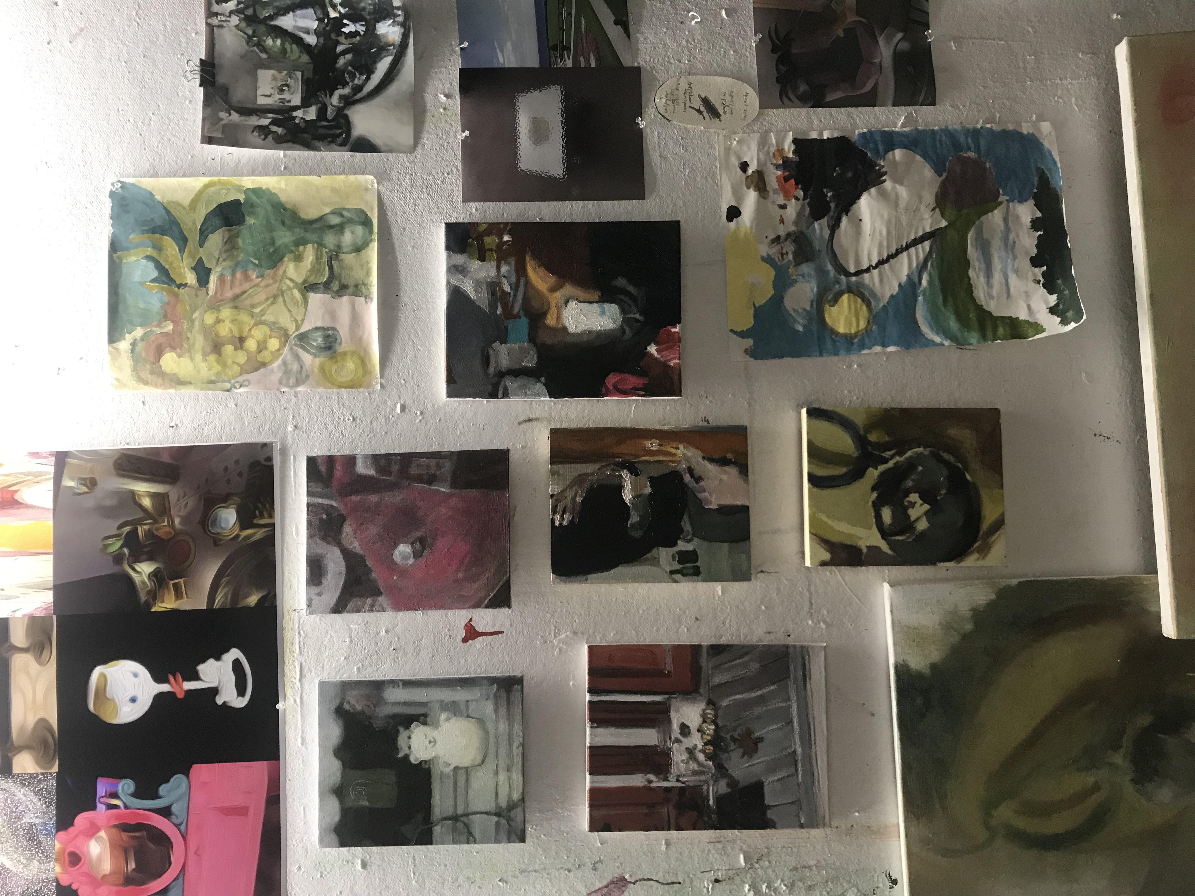 I seek references from unusual places. Advertisements, trash, screenshots from television, low-quality photos sent by my mother, blurry images from online marketplaces, and other fleeting snapshots of the world around me are obsessively collected and carefully analyzed for elements of truth. Painting these images adds to an ever-expanding narrative in which I convey a sense of the strangeness that is living in America today. Emotions are indirectly expressed and dissected through color, composition, and brush strokes. A disillusioned form of social realism approaches abstract expressionism with humor and an appreciation for beauty in the unexpected.
